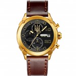 Представляємо вашій увазі наручний годинник Patriot 016BKGD з елегантним дизайном та благородним поєднанням кольорів — золото та чорний. Цей годинник, прикрашений тризубом, стане відмінним аксесуаром для чоловіків, які цінують класику та стиль.