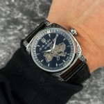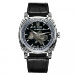 Завдяки механічному механізму, ви зможете насолоджуватися точним відображенням часу, а мінімалістичний циферблат з індексами підкреслює елегантність. Корпус з металу кольору чорного місяця і чорний шкіряний ремінець надають годиннику строгого ювелірного вигляду, додатково акцентуючи ваш статус.