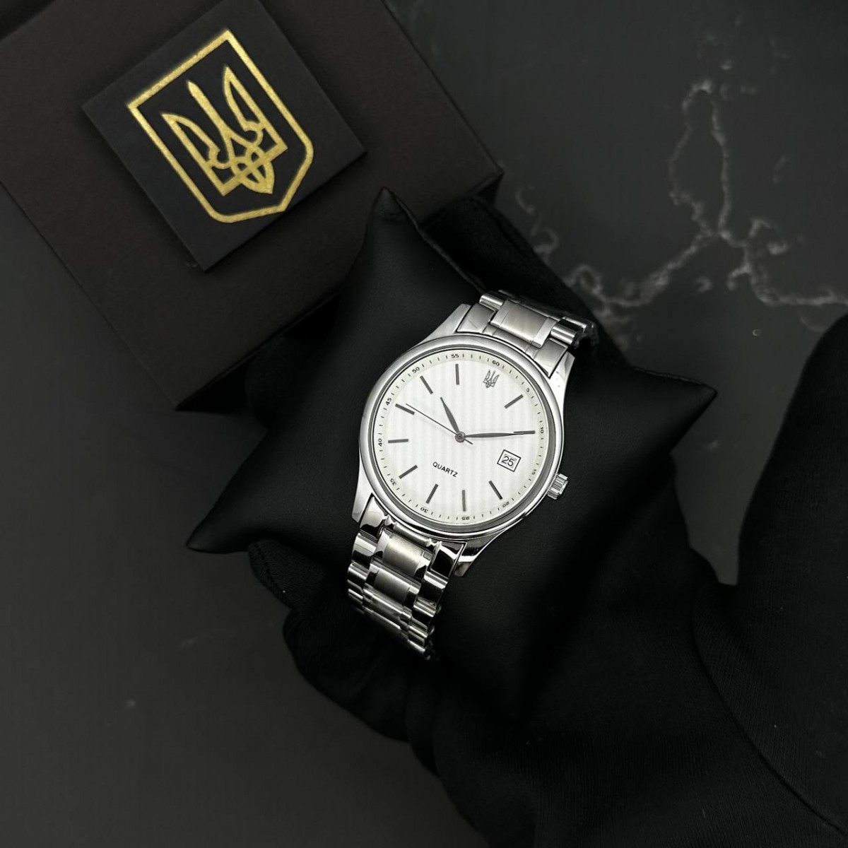 Представляємо вам наручний годинник Patriot 023 Тризуб Срібло – ідеальний аксесуар для тих, хто цінує стиль та якість. Цей годинник має витончений круглий корпус, виготовлений з металу з елегантною сріблястою обробкою, що підкреслює його класичний дизайн.