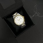 Годинник виготовлений з металевого корпусу золотистого кольору та має ремінець з нержавіючої сталі патинового кольору, що додає йому стильного вигляду. Водонепроникність 30 м гарантує надійність у повсякденному використанні. Додаткова функція календаря забезпечить зручність у плануванні вашого часу.