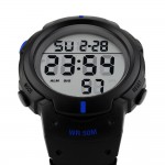 Годинник Skmei 1068BU Black-Blue - це стильний спортивний аксесуар, що поєднує функціональність та сучасний дизайн. Він має водонепроникність до 50 метрів, що дозволяє використовувати його під час водних видів спорту. Корпус виготовлений з полімеру і має круглу форму з діаметром 40 мм та товщиною 14 мм. Ремінець з каучуку забезпечує комфортне носіння.