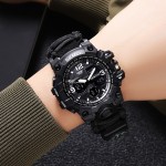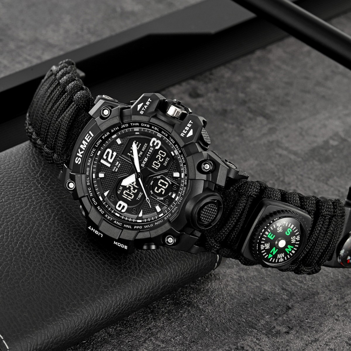 Годинник Skmei 1155BNBK Black — стильний та функціональний аксесуар для чоловіків. Модель має водонепроникність до 50 м та виготовлена з полімерного матеріалу, що забезпечує легкість і зручність носіння. Каучуковий ремінець забезпечує комфорт та надійність. Годинник обладнаний кварцовим механізмом і стрілочно-електронним циферблатом, на якому можна без труднощів зчитувати індикацію годин, секунд, дня тижня, місяця та числа.