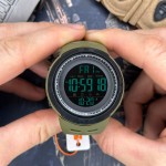 Годинник Skmei 1251AG Military – це ідеальний вибір для активних чоловіків, які цінують надійність та стиль. Водонепроникність до 50 м забезпечує безпеку під час водних видів спорту, а електронний механізм та циферблат з індикацією дня тижня, місяця та числа надають необхідну функціональність. Корпус годинника виготовлено з полімеру в чорному кольорі, а м'який каучуковий ремінець болотяного відтінку забезпечує комфортне носіння. Моделі цього стилю пропонують подібні функції, як будильник, таймер, секундомір і другий часовий пояс. Завдяки електролюмінесцентній підсвітці, годинник легко читати в темряві. Компактні розміри (49 х 49 мм) та легка вага (65 г) роблять його чудовим супутником для щоденного використання. На годинник надається гарантія 12 місяців, що підкреслює його якість. Вироблено в Китаї, він відображає поєднання спортивного та армійського стилю.