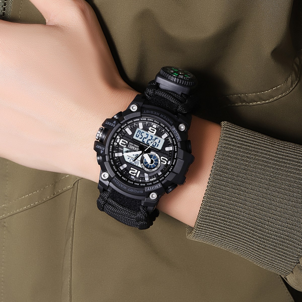 Годинник Skmei 1283NBK Black — це ідеальний вибір для активних чоловіків. Виготовлений з полімерного корпусу та паракордового ремінця, цей спортивний і армійський годинник поєднує функціональність і стиль. Має водонепроникність до 50 м, кварцовий механізм та стрілочно-електронний циферблат. Індикація в годинах, хвилинах, секундах, а також додаткові функції, такі як будильник, таймер, секундомір та другий часовий пояс, роблять його зручним у використанні. Чорний корпус і ремінець підкреслюють його елегантний вигляд, а електролюмінесцентна підсвітка забезпечує видимість у темряві. Розміри годинника складають 55 х 54 мм, вага — 74 г. Годинник має гарантію на 12 місяців, виготовлений в Китаї.