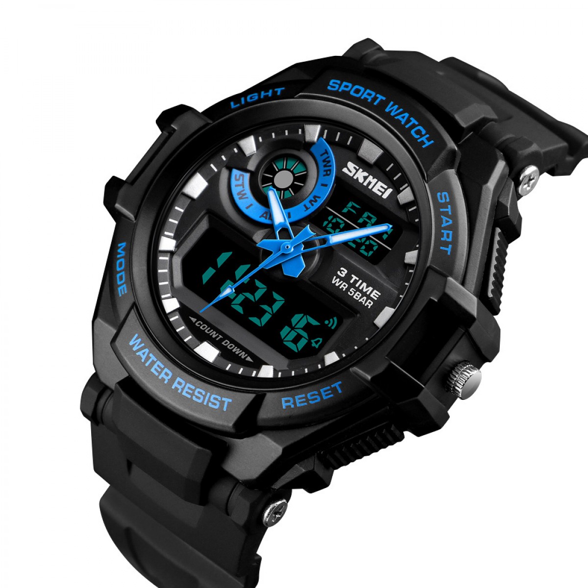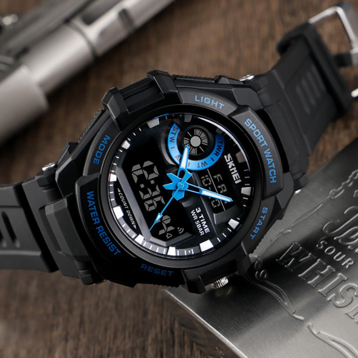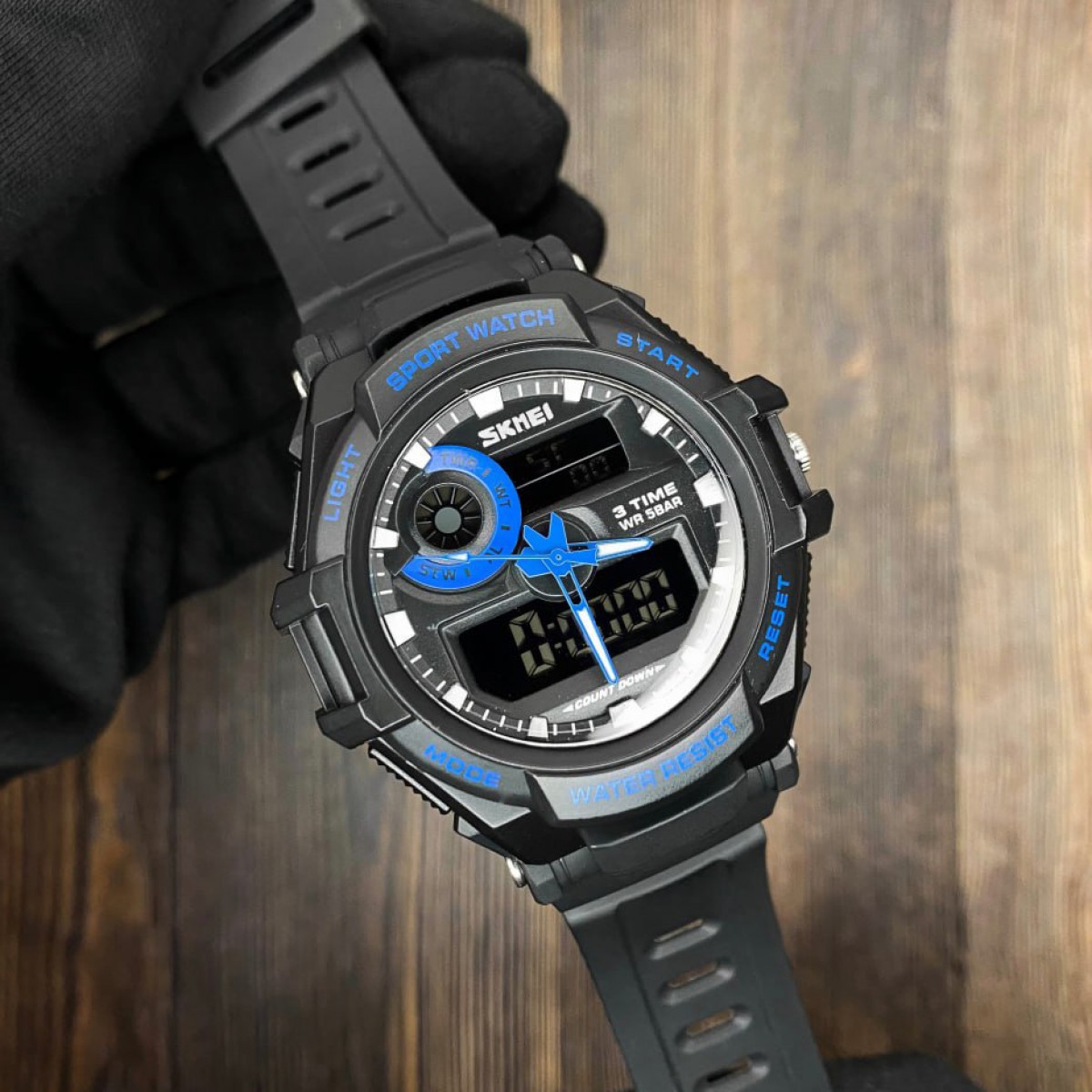 Годинник Skmei 1357BU Blue - це стильний спортивний аксесуар для чоловіків, що поєднує в собі функціональність і сучасний дизайн. Водонепроникний до 50 метрів, цей годинник ідеально підходить для активного способу життя. Корпус виготовлений з надійного полімеру, а ремінець з поліретану забезпечує комфорт та зручність носіння.