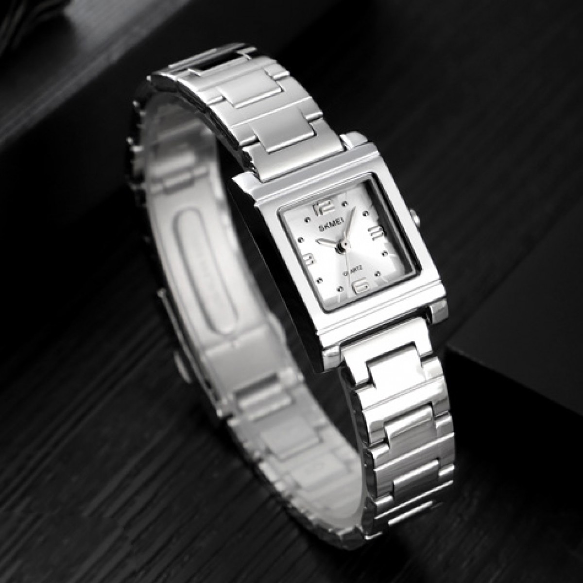 Годинник Skmei 1388SI Silver — елегантний жіночий аксесуар із класичним дизайном. Виготовлений з нержавіючої сталі, цей годинник має квадратну форму корпусу сріблястого кольору і мінеральне скло, що забезпечує довговічність. Водонепроникність до 30 метрів гарантує надійність у будь-яких умовах. Кварцовий механізм забезпечує точний час, а стрілочний циферблат з арабськими цифрами та індексами дозволяє легко зчитувати інформацію. Годинник має гарантію 12 місяців та стильний браслет, довжина якого складає 20 см, а ширина — 14 см. Вага годинника — 57 г. Ideal для тих, хто цінує якість та стиль.