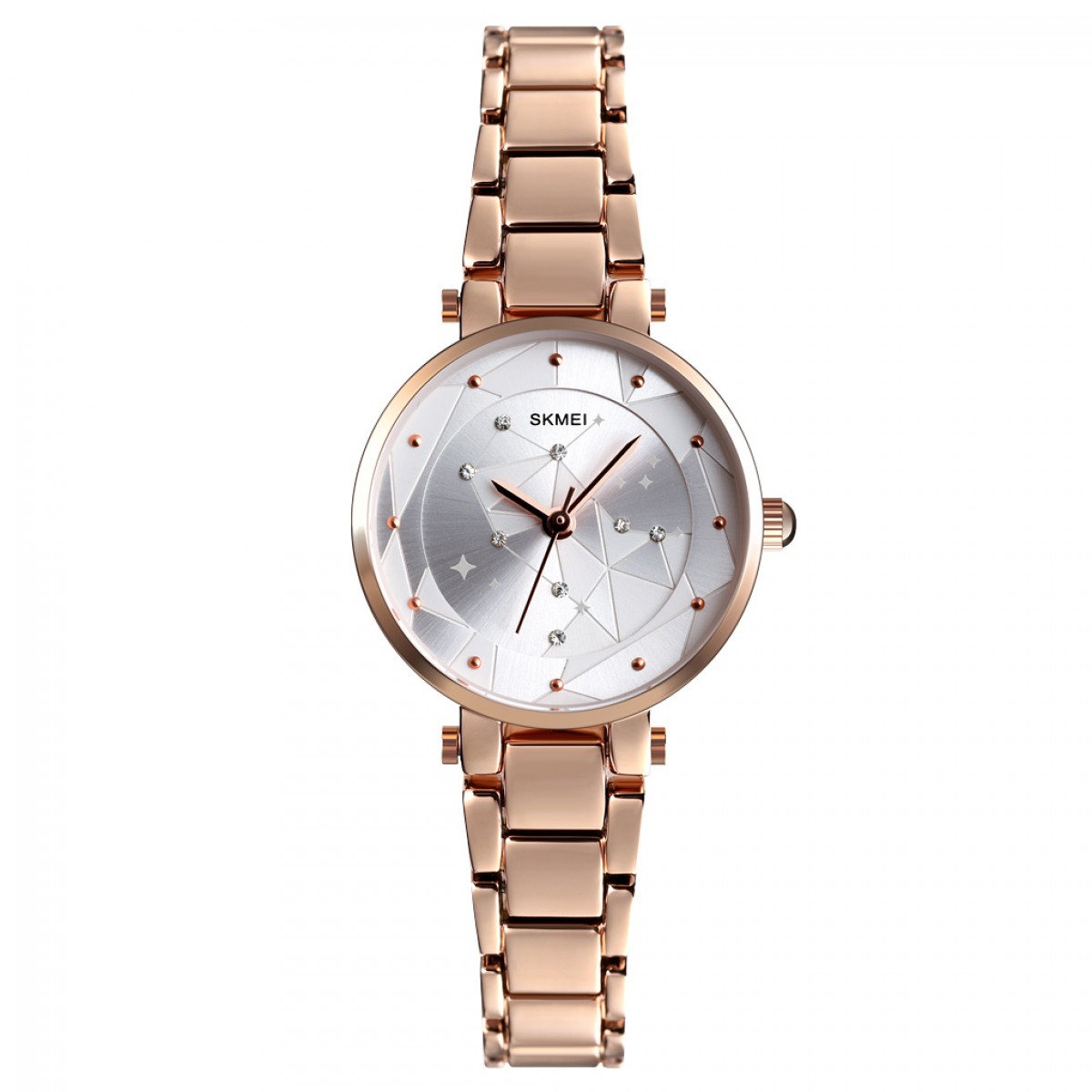 Годинник Skmei 1411RG в кольорі рожевого золота – це елегантний жіночий аксесуар, який доповнить будь-який образ. Виготовлений з металу та нержавіючої сталі, він гарантує довговічність і стиль. Водонепроникність до 30 м робить його практичним у повсякденному використанні. Класичний круглий корпус має розміри 33 х 27 мм, а мінеральне скло забезпечує захист циферблату. Годинник обладнаний кварцовим механізмом з індикацією годин, хвилин і секунд. Довжина браслету складає 20,5 см з шириною 10 мм, вага годинника – 45 г. Гарантія на виріб становить 12 місяців.