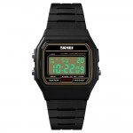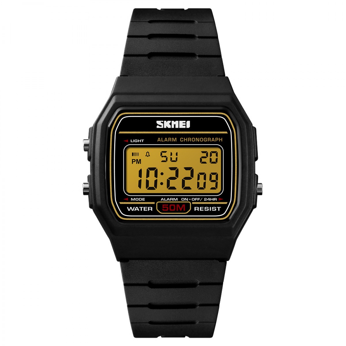 Годинники Skmei 1412BKGD Black-Gold – ідеальний вибір для активних людей, які цінують стиль і функціональність. Водонепроникність до 50 м забезпечує надійність під час будь-яких водних активностей. Корпус виконано з полімеру, а ремінець з каучуку, що гарантує комфорт і довговічність. Часовий механізм електронний, а циферблат обладнано функціями будильника, календаря та секундоміра. Спортивний і casual стиль у поєднанні з елегантним чорним і золотим кольорами роблять цей годинник універсальним для чоловіків, жінок і підлітків. Легка вага всього 20 грамів і кольорове електролюмінесцентне підсвічування додають зручності в темряві. Годинник має прямокутну форму корпусу розмірами 38 х 35 мм та арабську індикацію годин, хвилин та секунд. Гарантія на годинник – 12 місяців. Виробництво – Китай.