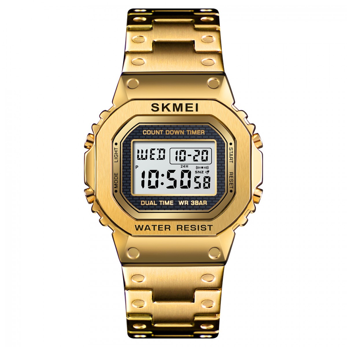Скло виконано з полімерного матеріалу, а електролюмінесцентна підсвітка дозволяє зручно зчитувати дані в темряві. Розміри годинника складають 48 х 44 мм, а вага – всього 157 грам. Skmei 1456GD Gold – це чудовий вибір для сучасного чоловіка, який цінує стиль та якість. Гарантія на годинник становить 12 місяців. Вироблено в Китаї.
