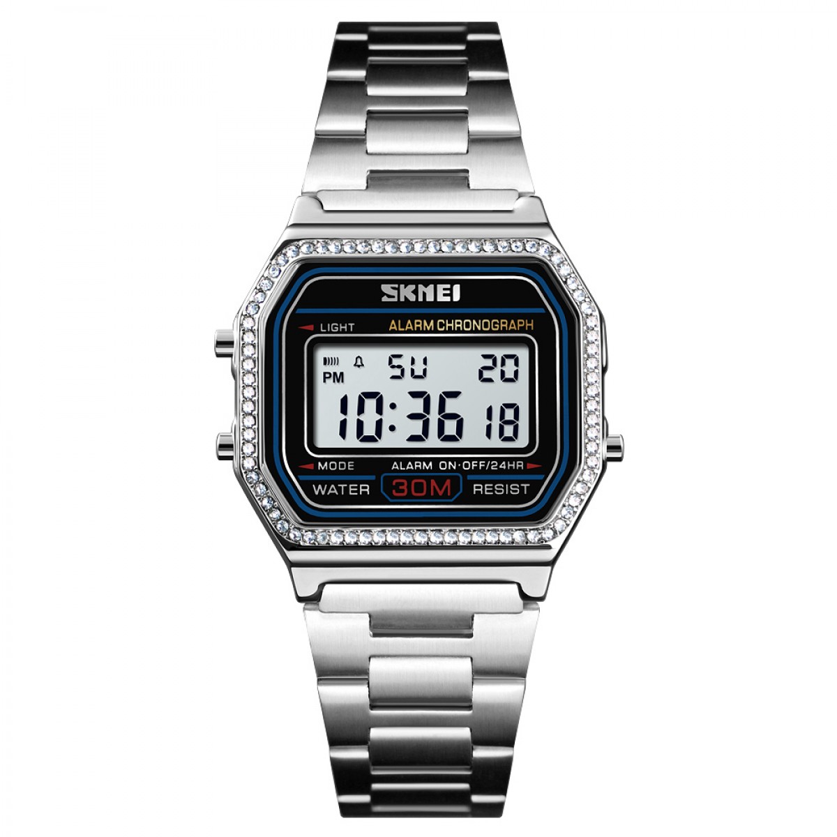Годинники Skmei 1474SI Silver поєднують стиль та функціональність, ідеально підходять для сучасних жінок. Виготовлені з нержавіючої сталі, ці годинники мають квадратну форму корпусу сріблястого кольору та полімерне скло. Вони водонепроникні на глибині до 30 м і забезпечують 12-місячну гарантію. Характеризуються електронним механізмом і функціями, такими як будильник, календар, секундомір та підсвічування. Індикація включає годині, хвилини, секунди, день тижня, місяць і число, а річна довжина ремінця становить 23 см при ширині 14 см. Ці годинники чудово підходять для повсякденного носіння, поєднуючи класичний та casual стиль.