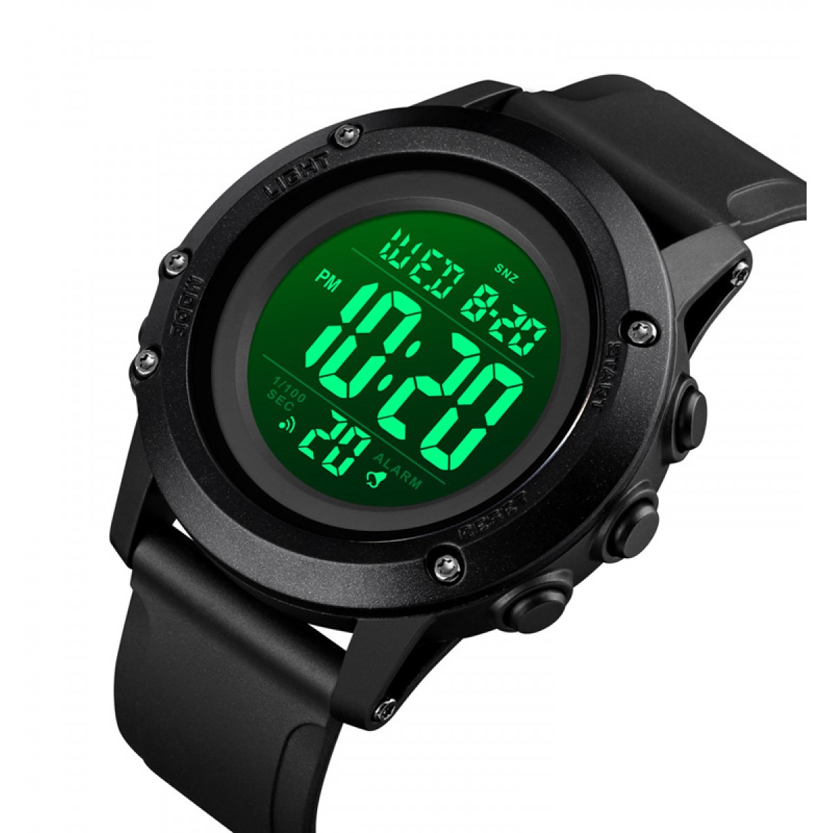 Годинник Skmei 1506BKBK Black-Black - це стильний чоловічий спортивний аксесуар, який поєднує функціональність та сучасний дизайн. Виконаний в чорному кольорі, він має полімерний корпус та каучуковий ремінець, що забезпечують комфорт під час носіння. Годинник є водонепроникним на глибину до 50 метрів і має електронний механізм з різноманітними функціями, включаючи будильник, календар та секундомір. Діаметр корпусу становить 53 мм, товщина - 14 мм, а довжина ремінця - 25 см. Підсвітка електролюмінесцентна забезпечує хорошу видимість в умовах недостатнього освітлення, а арабські цифри на циферблаті легкі для сприйняття. Гарантія на годинник становить 12 місяців. Вага виробу - 57 г.