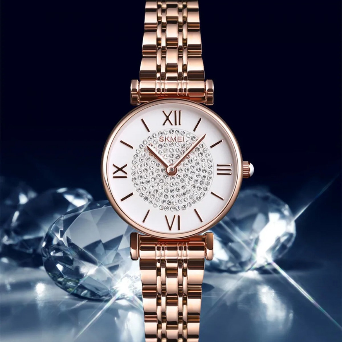 Годинник Skmei 1533RG Rose Gold - це елегантний аксесуар для жінок, що поєднує стиль і функціональність. Корпус виконаний з металу кольору рожевого золота, а браслет зі знакової нержавіючої сталі додає нотки розкоші. Цей кварцевий годинник має круглу форму та мінеральне скло, яке забезпечує високу стійкість до подряпин. Водонепроникність до 30 метрів робить його практичним вибором для повсякденного носіння. Циферблат обладнаний римськими цифрами і індексами, а товщина корпусу становить лише 9 мм. Годинник має гарантію на 12 місяців, а його вага всього 60 г. Завдяки своїм розмірам (39 х 30 мм), він ідеально підійде для будь-якої зап’ястки. Стильний і універсальний, цей годинник стане чудовим доповненням до вашого образу.