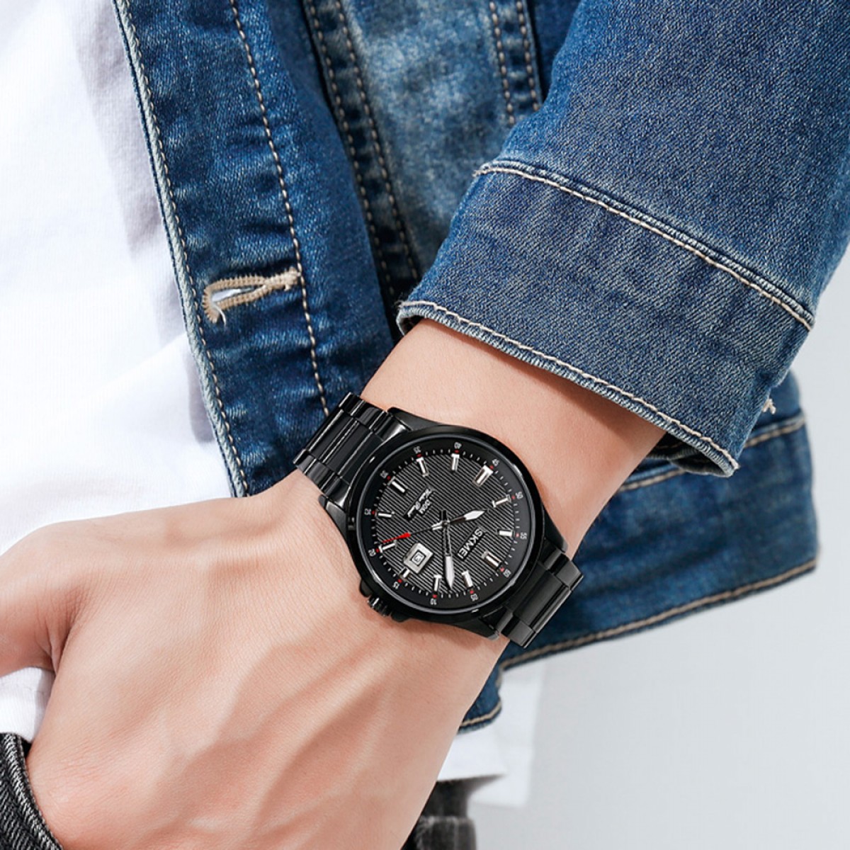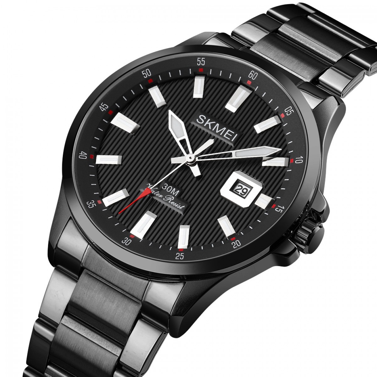 Годинник Skmei 1654BK Black – це стильний чоловічий аксесуар, який поєднує в собі класичний дизайн та сучасні технології. Корпус виготовлений з металу з чорним покриттям, що надає йому елегантного вигляду. Ремінець зі нержавіючої сталі забезпечує надійність та комфорт при носінні. Годинник має водонепроникність до 30 метрів і кварцовий механізм, що гарантує точність роботи. Стрілочний циферблат з індексами та арабськими цифрами пропонує чітку індикацію часу, а також дату. Мінеральне скло надійно захищає циферблат. Гарантія на дану модель становить 12 місяців. Розміри годинника – 49 х 42 мм, вага – 96 г.
