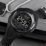Годинник Skmei 1656 All Black — стильний та функціональний аксесуар для чоловіків, який поєднує в собі спортивний та casual стилі. Корпус виготовлений з полімеру, а ремінець — з каучуку, що забезпечує комфорт під час носіння. Годинник має водонепроникність до 50 метрів, що робить його придатним для активного використання. Електронне скло надає надійний захист циферблату, а функції, такі як будильник, календар, секундомір та другий часовий пояс, роблять його практичним у повсякденному житті. Дизайн в чорному кольорі з електролюмінесцентним підсвічуванням додає елегантності. Гарантія на годинник становить 12 місяців. Розміри: 46 х 51 мм, вага: 54 г. Виробник – Китай.