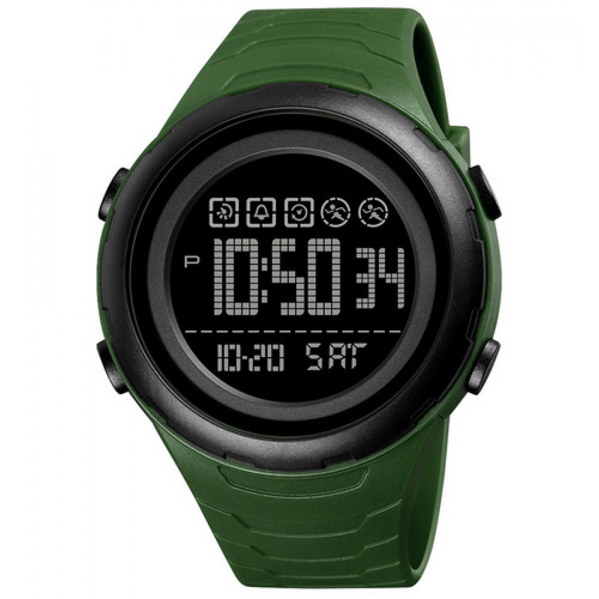 Годинник Skmei 1674 в зеленому та чорному кольорах — це ідеальне доповнення для активних чоловіків. Виготовлений із міцного ABS пластику, він гарантує надійність і довговічність у використанні. Модель має водонепроникність 50 WR, що дозволяє безпечно носити годинник під дощем або під час занять спортом. Електронний механізм пропонує широкий спектр функцій: від вимірювання часу до секундоміра, будильника та таймера. Діаметр корпусу складає 50 мм, а товщина — 14 мм. Ремінець з пластика забезпечує комфортну посадку на зап'ясті. Годинник оснащено підсвічуванням для зручності в темряві. Гарантія на цей виріб становить 12 місяців.