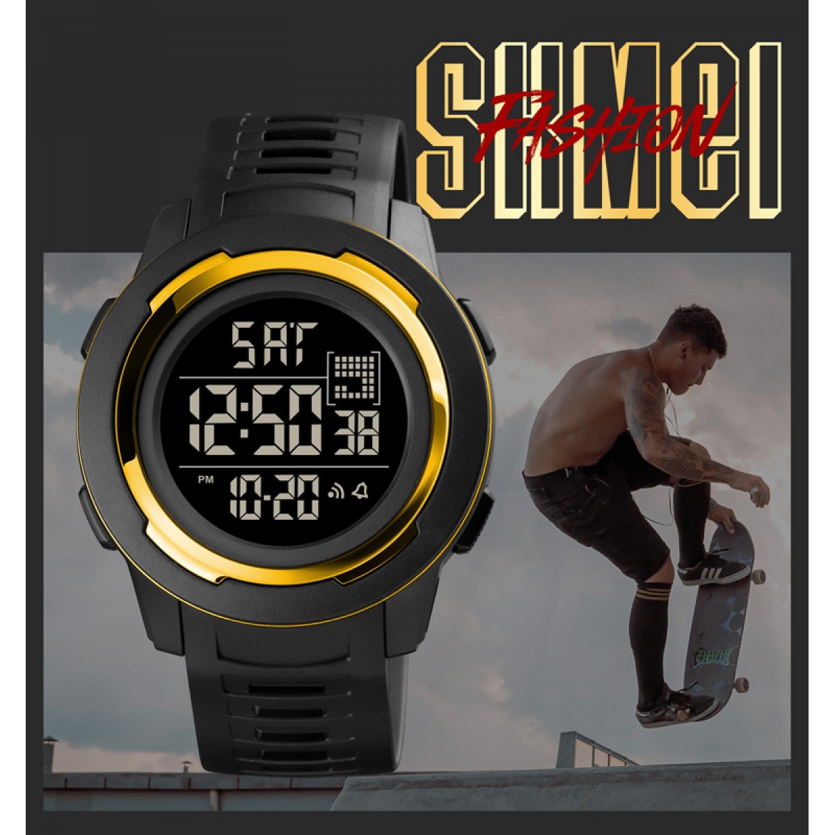 Стильний чорний корпус у поєднанні з чорним ремінцем робить цей годинник універсальним для спортивного та casual стилю. Із завдоволенням використовуйте електролюмінесцентне підсвічування у темряві. Гарантія на годинник складає 12 місяців. Розміри — 50 х 45 мм, вага — 47 г, довжина ремінця — 26 см, ширина ремінця — 22 см. Виготовлено в Китаї, бренд Skmei.