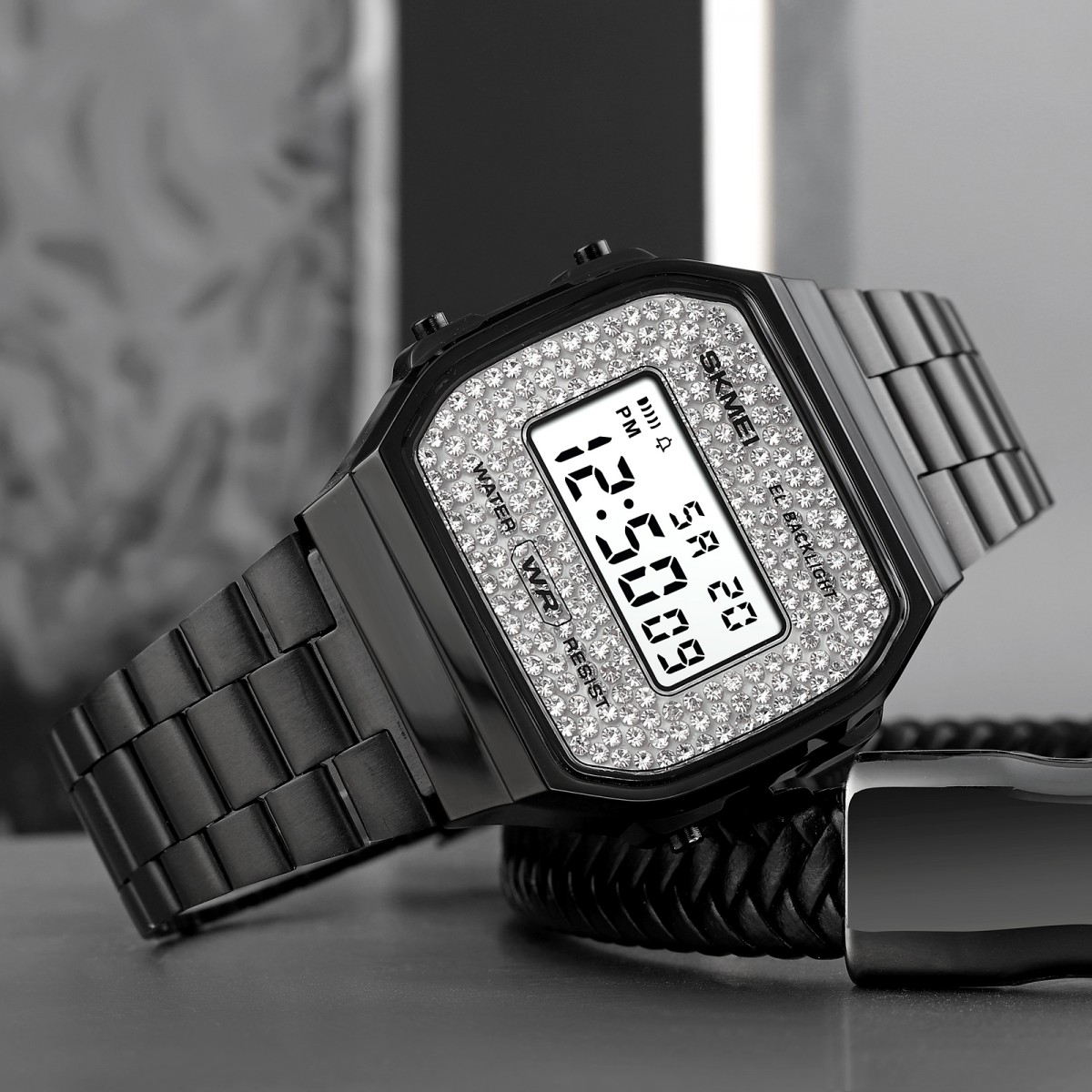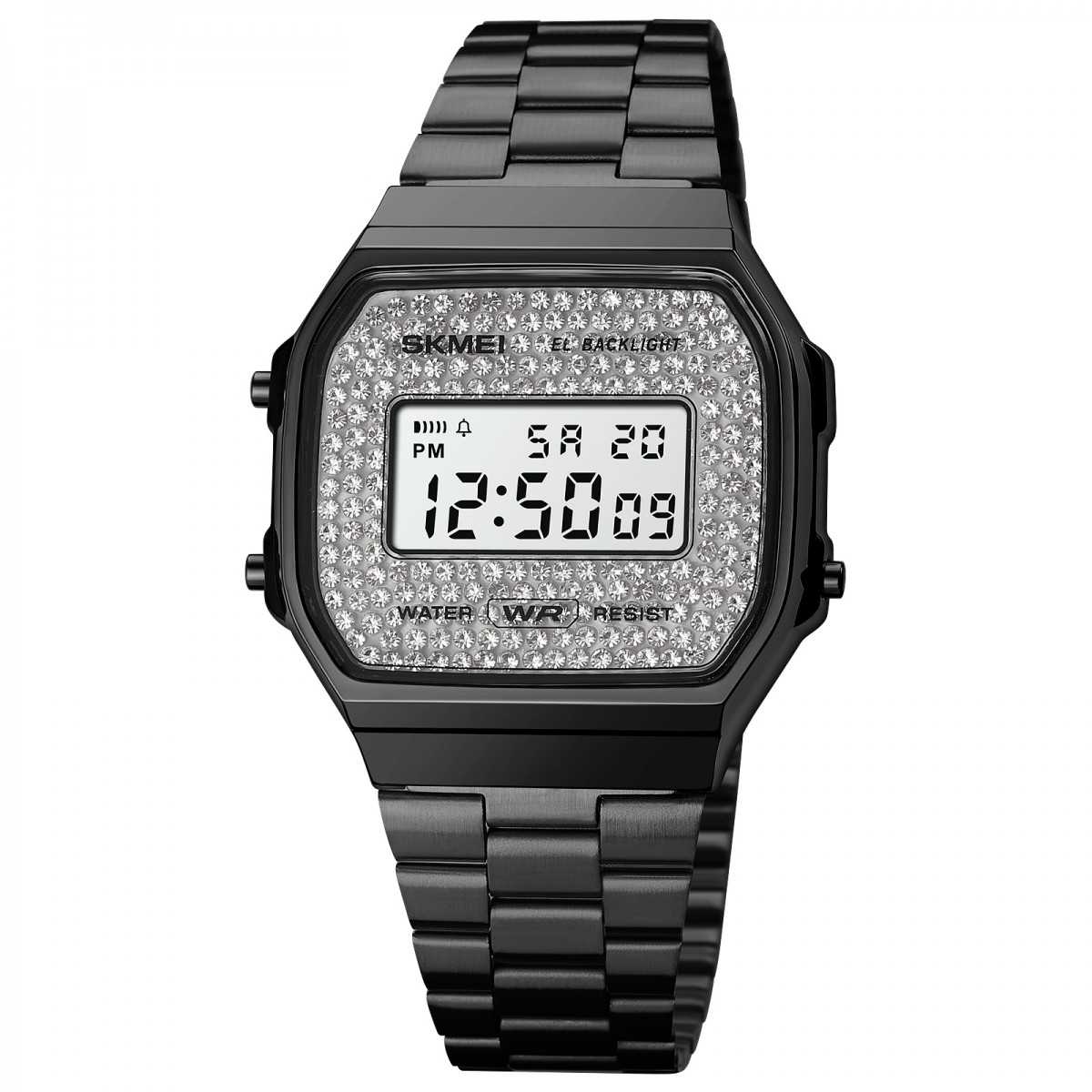 Годинник Skmei 1808BK Black — стильний жіночий аксесуар, виконаний в елегантному чорному кольорі. Корпус і ремінець виготовлені з металу, що забезпечує міцність і довговічність. Електронний механізм та електронний циферблат з арабськими цифрами гарантують точність часу. Годинник має водонепроникність до 30 метрів, що дозволяє носити його під час повсякденних активностей. Серед функцій — будильник, календар та секундомір. Підсвічування елекролюмінесцентної технології робить цей годинник зручним у темному середовищі. Розміри годинника становлять 39 х 37 мм, а довжина ремінця — 22,5 см. Гарантія на годинник — 12 місяців. Бренд: Skmei. Країна виробника: Китай. Вага: 63 г.