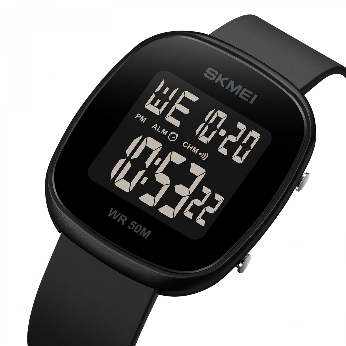 Годинник Skmei 1843BK Black – це стильний і функціональний аксесуар, який підійде як для чоловіків, так і для жінок. Виготовлений з міцного полімерного корпусу та каучукового ремінця, він має водонепроникність до 50 м. Спортивний дизайн та електронний тип циферблата забезпечують комфорт у використанні. Годинник оснащений корисними функціями, такими як будильник, календар, секундомір та другий часовий пояс. Його підсвічування на основі електролюмінесцентної технології дозволяє легко читати час у темряві. Розміри корпусу складають 45 х 39 мм, а товщина – 11 мм. Гарантія на продукт становить 12 місяців. Skmei 1843BK – це ідеальний вибір для активного способу життя.