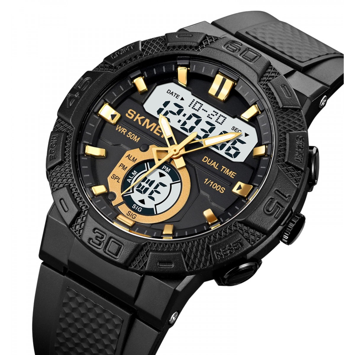 Годинник Skmei 1881GDWT Gold-White - це стильний та функціональний чоловічий аксесуар, що поєднує в собі спортивний і casual стилі. Виготовлений з якісних матеріалів, він має полімерний корпус чорного кольору і надійний каучуковий ремінець. Годинник відзначається водонепроникністю до 50 метрів, що робить його ідеальним для активного способу життя. Оснащений кварцовим механізмом, стрілочно-електронним циферблатом та електролюмінесцентною підсвіткою, він має корисні функції, такі як будильник, календар, секундомір та індикація другого часового поясу. Розміри годинника становлять 54 х 46 мм, а вага - 52 г. Гарантія на цей годинник становить 12 місяців.