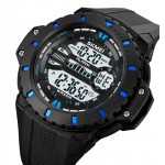 Годинник Skmei 1885BU Blue - це стилізований спортивний аксесуар, який поєднує в собі сучасний дизайн та функціональність. Устаткований електронним механізмом, він має електронний циферблат з арабськими цифрами, що дозволяє в зручний спосіб відстежувати час: години, хвилини, секунди, день тижня, місяць та число. Водонепроникність до 50 м забезпечує надійність під час використання під водою, а електролюмінесцентна підсвічування дозволяє зчитувати дані навіть у темряві.