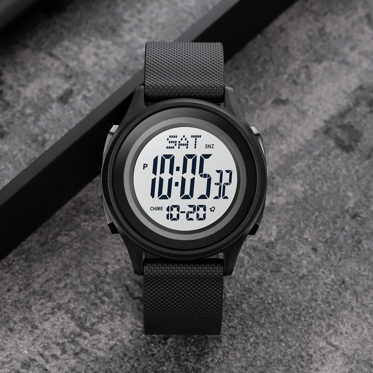 Годинник обладнаний електронним циферблатом з арабськими цифрами, оснащений підсвічуванням електролюмінесцентного типу. Функції, такі як будильник, календар, секундомір, крокомір та лічильник калорій, роблять його практичним для щоденного використання.