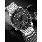 Годинники Skmei 1898SIBK Silver-Black поєднують стиль і функціональність, з водонепроникністю до 30 метрів. Виготовлені з металу, вони мають круглу форму корпусу з діаметром 45 мм та товщиною 13 мм. Кварцовий механізм забезпечує точність, а стрілочно-електронний циферблат із підсвічуванням дозволяє зручно зчитувати час. Годинники оснащені багатьма корисними функціями, такими як будильник, таймер, другий часовий пояс і секундомір. Сріблястий браслет із металу легко застібається на раскладній застібці. Модель підходить для чоловіків і буде ідеальним доповненням до повсякденного стилю. Гарантія становить 12 місяців.
