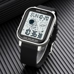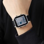 Цей унісекс-годинник має електронний механізм і прямокутну форму корпусу. Циферблат оснащений арабськими цифрами та електролюмінесцентним підсвічуванням для зручності читання в темряві. Годинник також має безліч корисних функцій, таких як будильник, календар, секундомір і можливість відображення другого часового поясу.