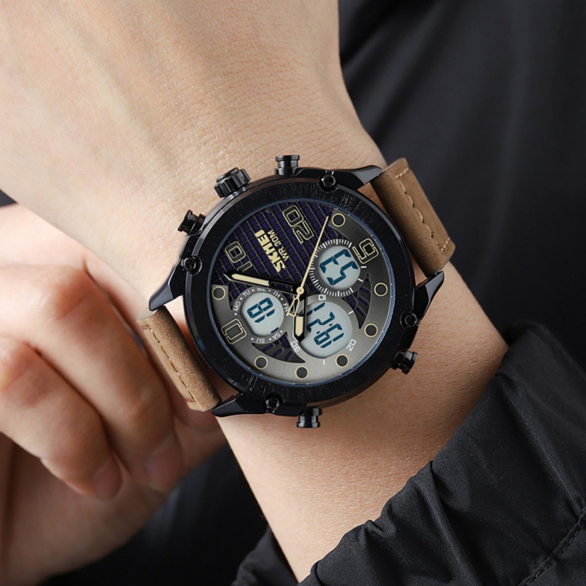 Циферблат, який має стрілочно-електронний тип, забезпечує зручну індикацію часу, дня тижня та числа за допомогою арабських цифр і крапок. Годинник також має електролюмінесцентне підсвічування для комфортного використання у темряві. Розміри корпусу складають 52,9 х 45,9 мм, а довжина ремінця - 26 см (ширина - 22 см), важить 85 г. Годинник пропонує 12-місячну гарантію. Вироблений в Китаї, він підходить для щоденного носіння в стилі casual або класичному.