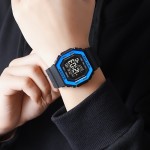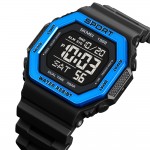 Годинник оснащено різноманітними функціями, включаючи будильник, календар, секундомір та другий часовий пояс, що робить його універсальним помічником у повсякденному житті. Чорний ремінець з каучуку та квадратний корпус у чорному та синьому кольорах надають йому стильного вигляду.