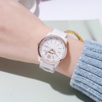 Годинник Skmei 2008WT White - елегантний жіночий аксесуар з класичним дизайном. Корпус виготовлений з полімеру, а ремінець - з міцного поліуретану, що забезпечує комфортне носіння. Водонепроникність до 50 метрів дозволяє використовувати годинник у різних умовах. Мінімалістичний циферблат з римськими цифрами і індексами відображає години, хвилини та секунди. Годинник має круглу форму корпусу білого та золотистого кольорів, що додає вишуканості. Діаметр корпусу становить 39 х 36 мм, а довжина ремінця - 22,5 см. Гарантія на годинники - 12 місяців. Вага - 35 г. Вироблено в Китаї.