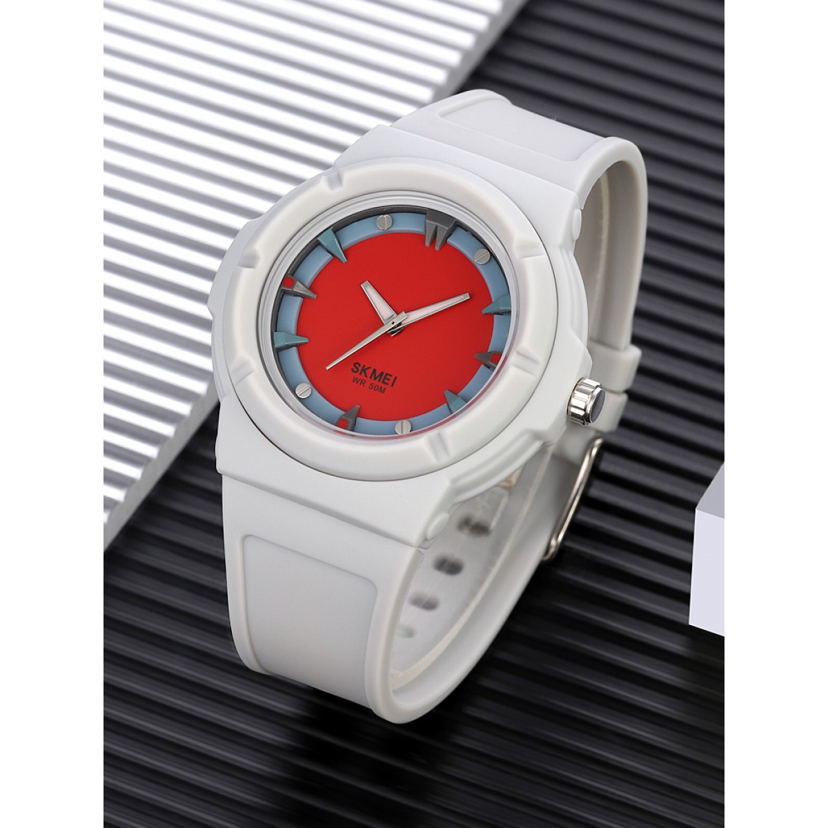 Годинник Skmei 2011GY Gray – стильний та практичний аксесуар для жінок. Водонепроникність до 50 м забезпечує надійність у будь-яких умовах. Корпус виготовлений з полімеру, а ремінець – з поліуретану, що гарантує комфорт під час носіння. Розміри годинника становлять 44 х 44 мм, а кругла форма корпусу надає йому елегантного вигляду. Циферблат з індексами демонструє години, хвилини та секунди, а кварцовий механізм забезпечує точність. Колір корпусу та ремінця – білий, що робить модель універсальною для повсякденного стилю. Годинник постачається з гарантією на 12 місяців і має вагу всього 34 г.