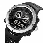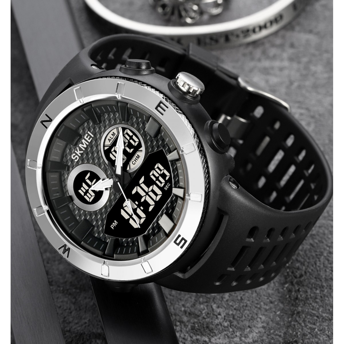 Годинник Skmei 2014BKBK Black-Black - це стильний і функціональний аксесуар для чоловіків, що поєднує в собі сучасний дизайн та практичність. Завдяки водонепроникності до 50 м, він ідеально підходить для активного способу життя. Корпус виготовлений з міцного полімеру, а ремінець з поліввретану забезпечує комфорт при носінні. Годинник обладнаний кварцовим механізмом і має комбінований стрілочно-електронний циферблат з індикаторами годин, хвилин, секунд, дня тижня та дати.