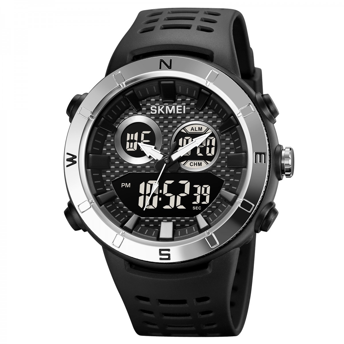 Skmei 2014SIBK оснащений електронним механізмом і має комбінований циферблат зі стрілками та індикаторами. Ви також зможете скористатися функціями будильника, календаря, секундоміра та другого часового поясу. Люмінесцентна підсвітка забезпечить видимість в темряві, а мінеральне скло захистить від подряпин.