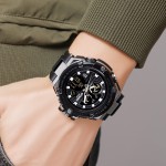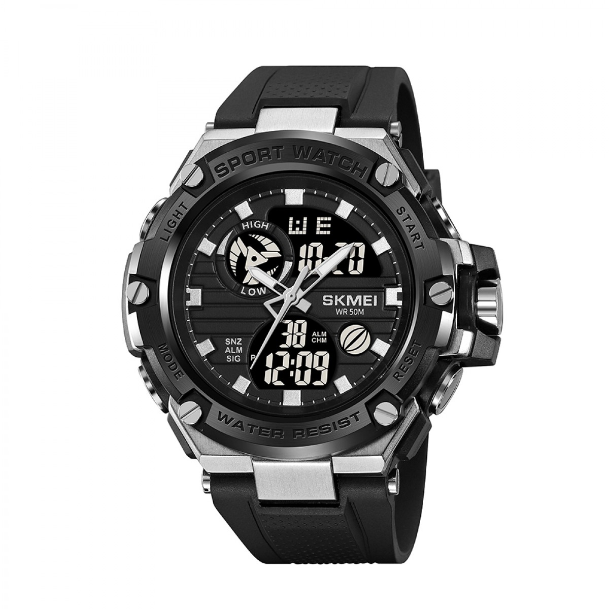 Годинник Skmei 2119SI Silver - це стильний і функціональний чоловічий аксесуар, що поєднує спортивний та casual стиль. Він виготовлений з цинкового сплаву, має водонепроникність до 50 м та оснащений кварцовим механізмом. Циферблат поєднує стрілочний і електронний формат, з індикацією годин, хвилин, секунд, дня тижня та дати. Годинник обладнаний корисними функціями, такими як будильник, календар, другий часовий пояс і секундомір. Електролюмінісцентна підсвітка забезпечує видимість у темряві. Ремінець з каучуку забезпечує зручність носіння, а його розміри (56 х 59) і вагу (93 г) роблять цей аксесуар легким та комфортним. Годинник доступний в чорному кольорі корпусу та ремінця, з гарантією на 12 місяців. Виробництво — Китай.