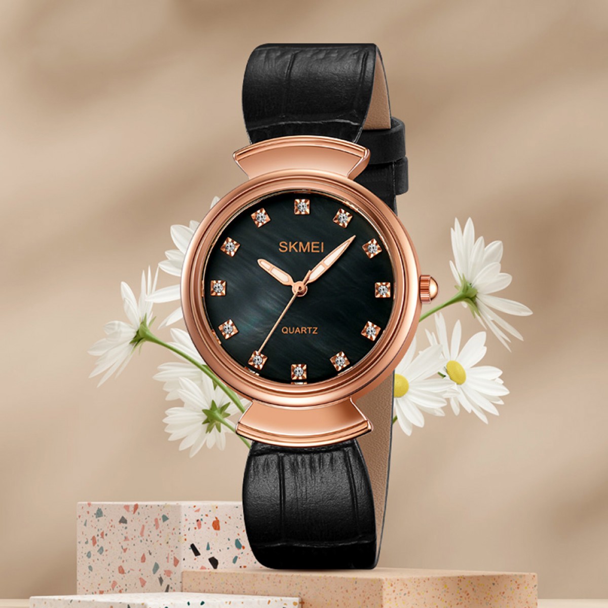 Годинник Skmei 2165RGBK — це стильний аксесуар, який ідеально поєднує елегантність і практичність. Виготовлений із цинкового сплаву в розкішному кольорі розового золота, він стане чудовим доповненням до будь-якого жіночого образу. Його чорний ремінець з штучної шкіри надає особливого шику, а кругла форма корпусу підкреслює класичний стиль.