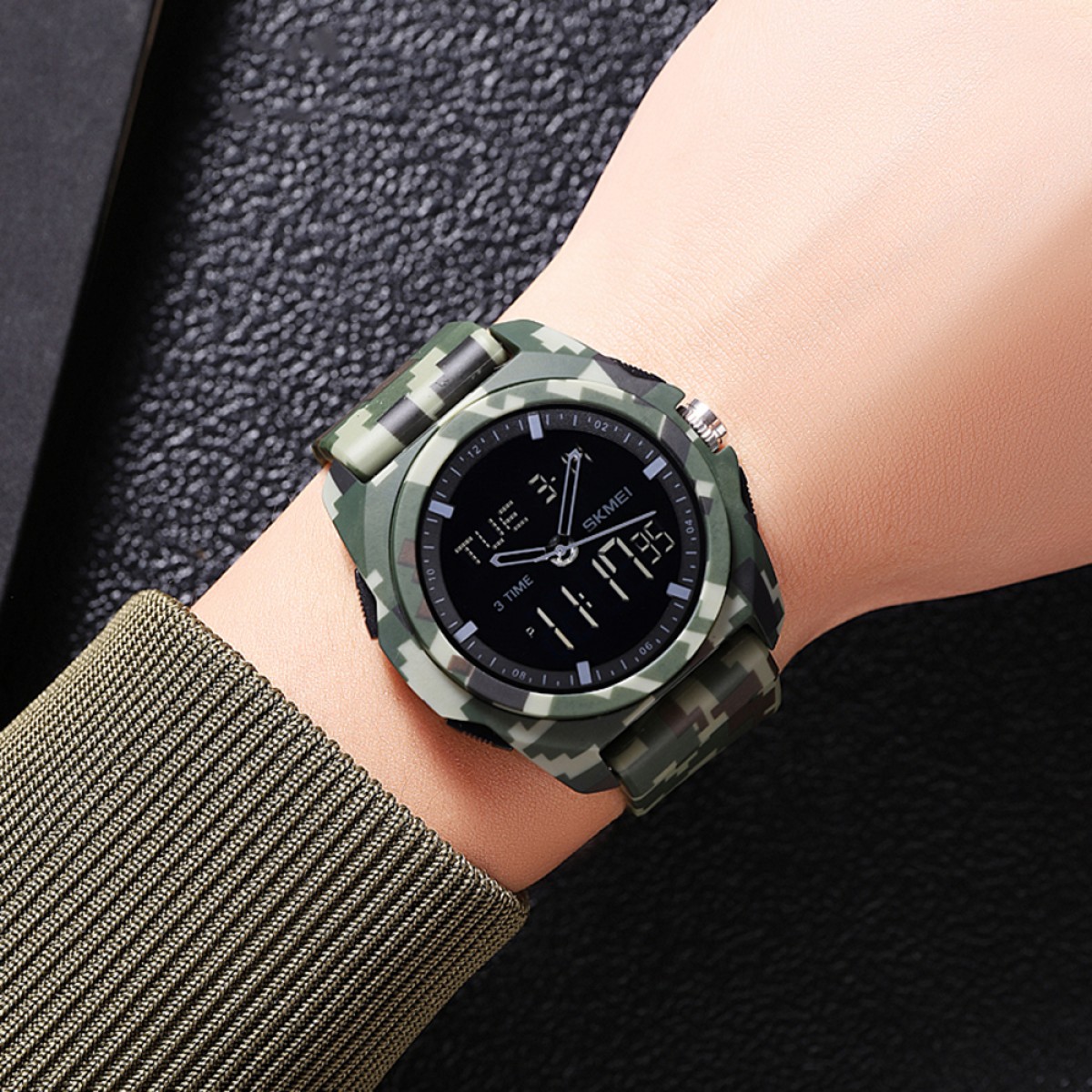 Годинники Skmei 2199CMGN Camo Green - ідеальний вибір для активних чоловіків. Їх водонепроникність до 50 метрів забезпечує надійність у водних умовах. Корпус виготовлений з полімерного матеріалу, а ремінець - з поліуретану, що гарантує комфорт і витривалість. Годинники мають стильний армійський та casual дизайн, ідеально підійдуть для повсякденного носіння. Стрілочно-електронний циферблат має електролюмінесцентне підсвічування, що дозволяє зручно читати час у будь-яких умовах. Додаткові функції, такі як будильник, календар, секундомір та другий часовий пояс, роблять ці годинники функціональними. Розмір корпусу 47 х 51 мм, а вага всього 60 грамів. Гарантія на годинники становить 12 місяців.