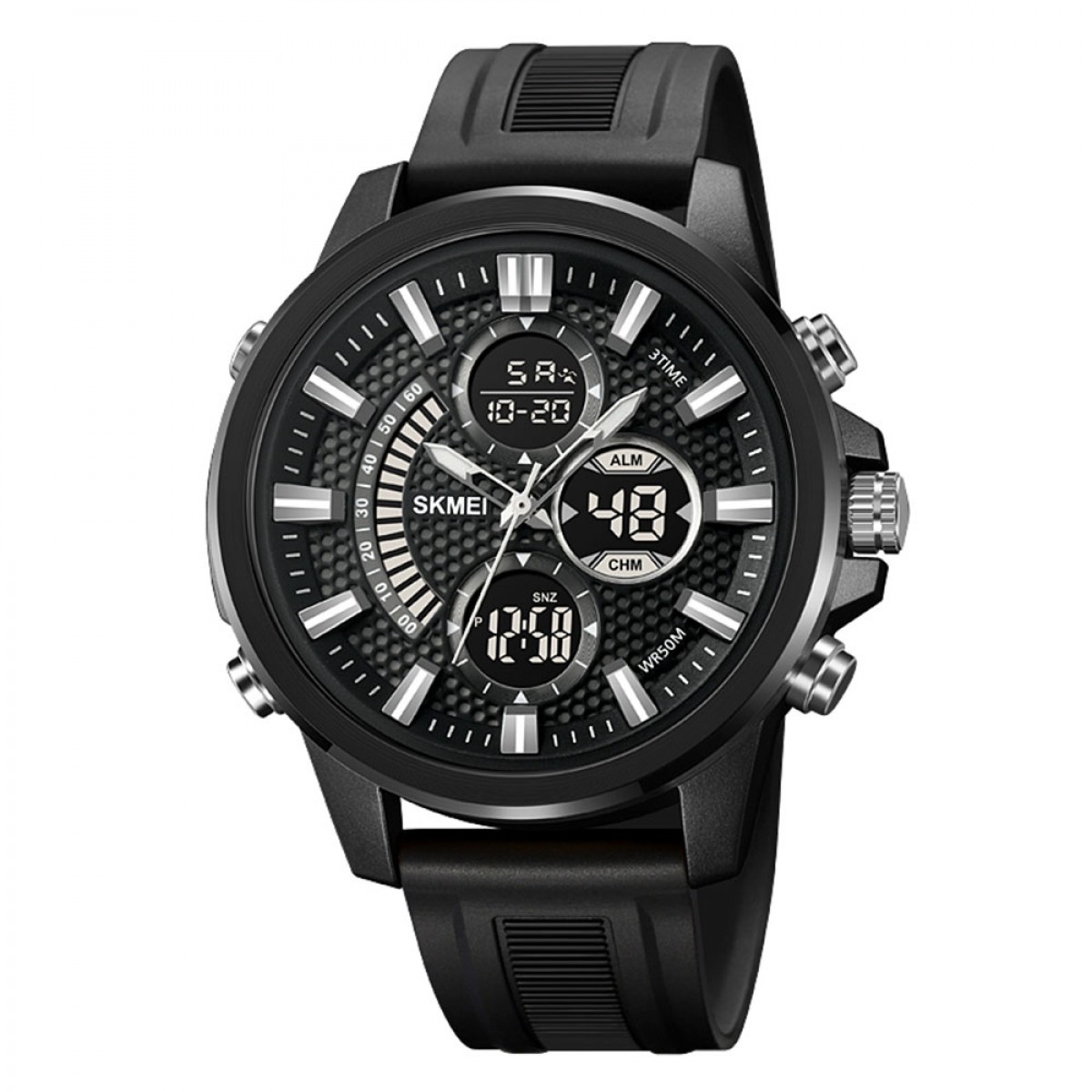Годинник Skmei 2235BKBK Black – стильний спортивний аксесуар для чоловіків. Виготовлений з цинкового сплаву та каучукового ремінця, цей годинник вирізняється водонепроникністю до 50 метрів. Кварцовий механізм та комбінований стрілочно-електронний циферблат надають точність і зручність. Основні функції включають будильник, календар, другий часовий пояс та секундомір. Годинник має електролюмінесцентне підсвічування для зручності у темряві. Розміри корпусу - 46,3 х 50 мм, довжина ремінця - 25 см, а вага - 53 г. Гарантія на виріб становить 12 місяців. Колір корпусу та ремінця - чорний, форма корпусу - кругла. Бренд: Skmei.