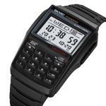 Годинник має електронний циферблат зі світлодіодним підсвічуванням і квадратною формою. Функції включають телефонну книжку, будильник, календар, калькулятор та секундомір, що робить його практичним для будь-якої ситуації. Додатково відображає хвилини, секунди, день тижня та число. Довжина ремінця складає 25 см, ширина – 19 см, а вага годинника всього 35 г.