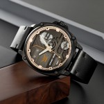 Завдяки водонепроникності до 30 метрів, ви можете носити його безтурботно в повсякденному житті. Мініральне скло захищає циферблат, на якому зображені арабські цифри та точки для зручності читання. Годинник працює на кварцевому механізмі та має індикацію годин, хвилин і секунд.