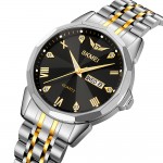 Годинники Skmei 2291TGDBK поєднують у собі стиль і функціональність. Їх водонепроникність до 30 метрів забезпечує надійність у різних умовах. Корпус виготовлений з металу сріблястого кольору, а ремінець — з нержавіючої сталі в золотистому та сріблястому відтінках. Годинники мають кварцовий механізм та стрілочний циферблат з арабськими і римськими цифрами, що дозволяє легко зчитувати час. Додаткова функція календаря робить їх ще більш практичними. Стиль Casual і класичний дизайн роблять цей аксесуар універсальним для будь-якого образу. Гарантія на годинники становить 12 місяців, а їх вага — 102 г.