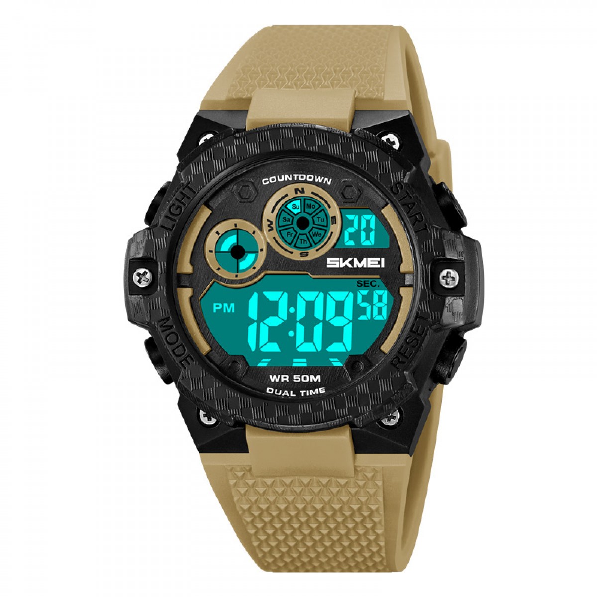 Годинник Skmei 2337AT Apricot — ідеальний вибір для активних чоловіків, які цінують стиль та функціональність. З вагою лише 55 грам, цей легкий спортивний годинник оснащений електронним механізмом і має круглий корпус діаметром 47 мм з міцного пластикового матеріалу. Водонепроникний до 50 метрів, він стане надійним супутником під час водних активностей.