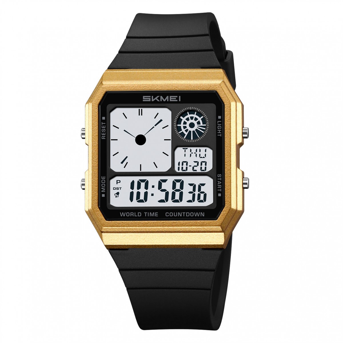 Годинник Skmei 2347BKGD Gold-Black поєднує стиль та функціональність. Завдяки водонепроникності до 30 м, він підходить для повсякденного використання. Корпус і ремінець виготовлені з поліуретану, що забезпечує легкість та зручність у носінні. Цей електронний годинник має квадратну форму, золотистий корпус та чорний ремінець. Функції годинника включають будильник, календар, хронограф і секундомір, а також електролюмінесцентне підсвічування для зручності в темряві. Годинник підходить для чоловіків, жінок і як унісекс аксесуар. Розміри годинника складають 35,8 х 40,8 мм, вага – 33 г. Гарантія на виріб становить 12 місяців.