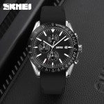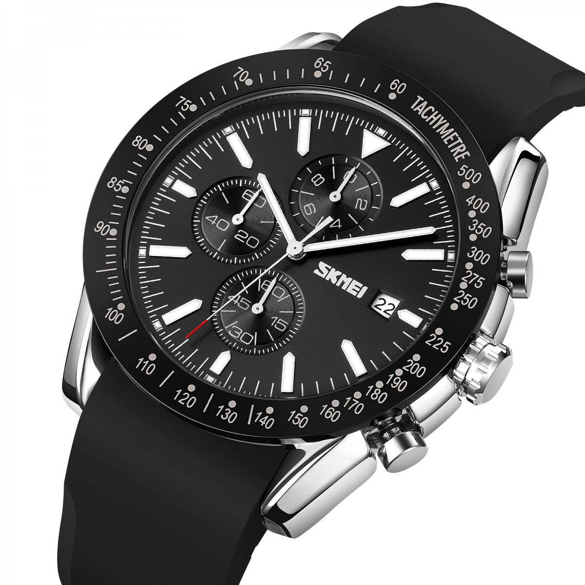 Годинники Skmei 9253PSIBK Silver-Black – стильний аксесуар для чоловіків, що поєднує в собі класичний та casual дизайни. Має круглу сріблясту корпусу з металу та чорний силіконовий ремінець. Водонепроникність до 30 м забезпечує надійність у будь-яких умовах. Годинники оснащені кварцовим механізмом і мінеральним склом, а також функцією календаря та хронографа. Підсвічування - люмінесцентне. Розміри корпусу становлять 50 х 45 мм, вага – 89 г. Годинники мають 12-місячну гарантію та виготовлені в Китаї.