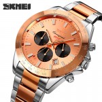 Годинники Skmei 9259RGRG в кольорі рожевого золота поєднують в собі елегантний дизайн та сучасні технології. З водонепроникністю до 30 метрів, вони підходять для повсякденного використання. Корпус виготовлений із цинкового сплаву, а ремінець - з нержавіючої сталі, що забезпечує тривалу експлуатацію.