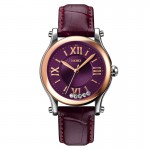 Годинник має круглий корпус діаметром 30 мм, виконаний з високоякісної сталі, з привабливим покриттям кольору рожевого золота. Фіолетовий шкіряний ремінець, довжиною 24 мм, додає йому витонченості та комфорту при носінні.
