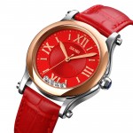 Годинник Skmei 9265RD Red — втілення елегантності та стилю для сучасної жінки. Цей розкішний аксесуар має круглий корпус з нержавіючої сталі рожевого золота, який доповнює червоний шкіряний ремінець. Час на годиннику відображається за допомогою стрілок та римських цифр, що додає класичного шарму.