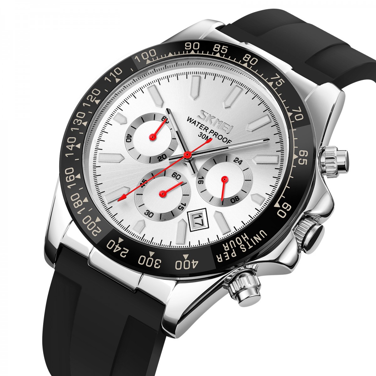 Годинник Skmei 9275SISI Silver-Silver поєднує в собі стиль та функціональність. Завдяки водонепроникності до 30 м, він підходить для повсякденного носіння, а кварцовий механізм забезпечує точність часу. Корпус виконаний із цинкового сплаву сріблястого кольору, а чорний силіконовий ремінець надає йому сучасного вигляду. Циферблат зі стрілками та арабськими цифрами оснащений календарем і люмінесцентним підсвічуванням для зручності використання у темряві. Розміри годинника складають 48 х 53 мм, а довжина ремінця - 26,5 см. Мінеральне скло забезпечує високу стійкість до подряпин. Годинник має гарантію на 12 місяців та є ідеальним вибором для чоловіків, які цінують класичний стиль. Виробник - Китай. Вага годинника складає 89 г.