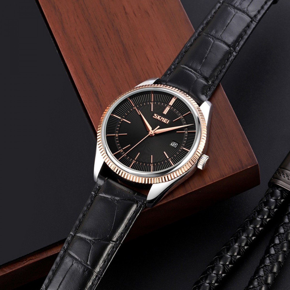 Годинники Skmei 9298TRGBK Rose-Gold Black - це стильний аксесуар для сучасного чоловіка. Корпус виготовлений з металу, у класичному золотому кольорі, що підкреслює елегантність, а чорний шкіряний ремінець забезпечує комфорт у носінні. Водонепроникність до 30 м гарантує надійність в будь-яких умовах. Кварцовий механізм і стрілочний циферблат із арабськими цифрами забезпечують точність часу, а функція календаря робить цей годинник ще більш функціональним. Розміри годинника становлять 47 х 40 мм, вага - 50 г. Годинники мають гарантію на 12 місяців, що підтверджує їхню якість.