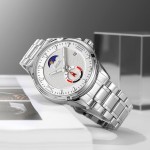 Механізм кварцовий з мінеральним склом захищає циферблат, на якому розташовані індекси, арабські та римські цифри. Годинник оснащений функцією календаря та люмінесцентним підсвічуванням.
