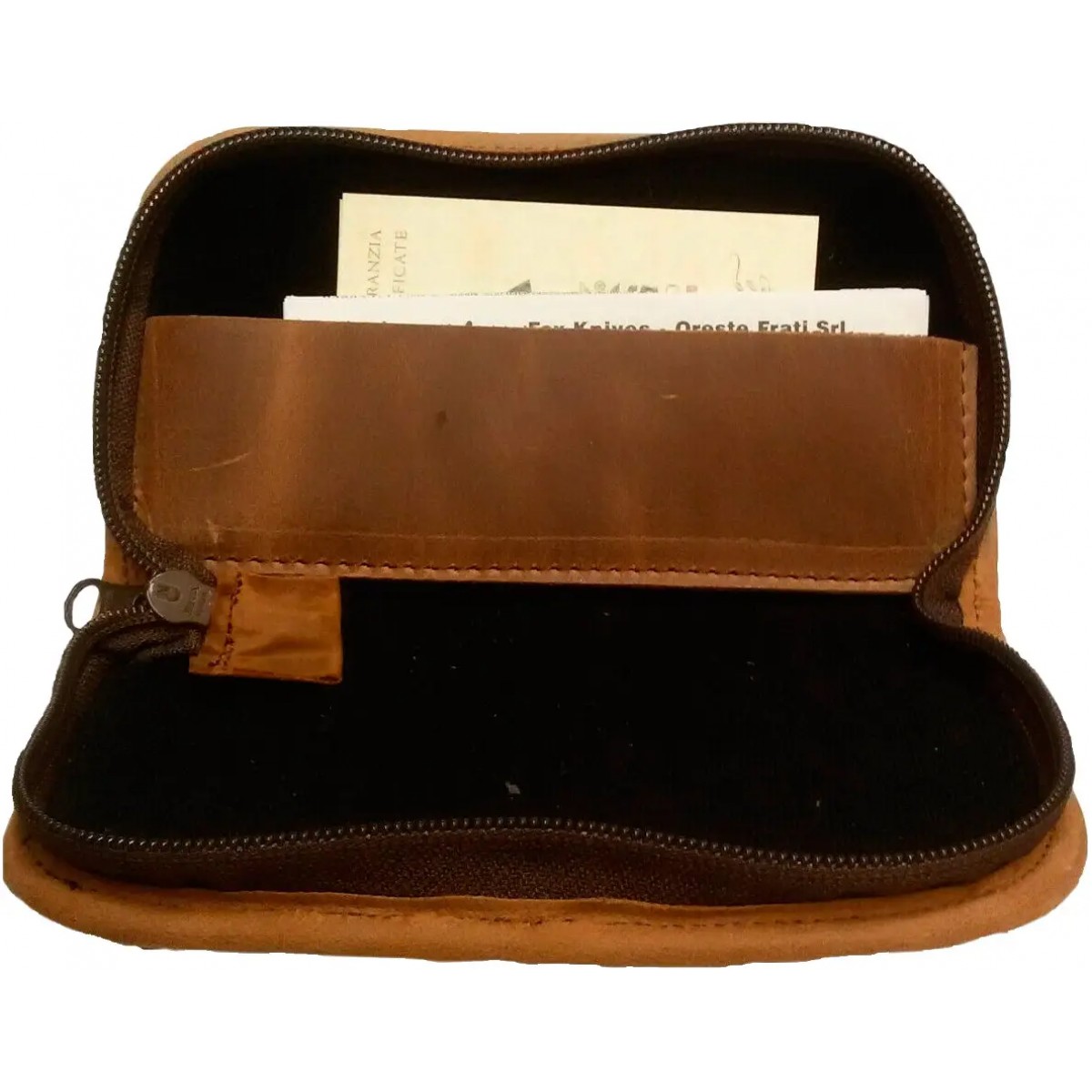 Чохол FODF6 — стильний компактний чохол на блискавці для складаного ножа. Модель виконана з високоякісної шкіри і має логотип бренду Fox на передній частині. Внутрішня частина обшита м’яким матеріалом, який захистить ніж від подряпин і пошкоджень при падінні чи ударі. Всередині розташована кишеня для документів.